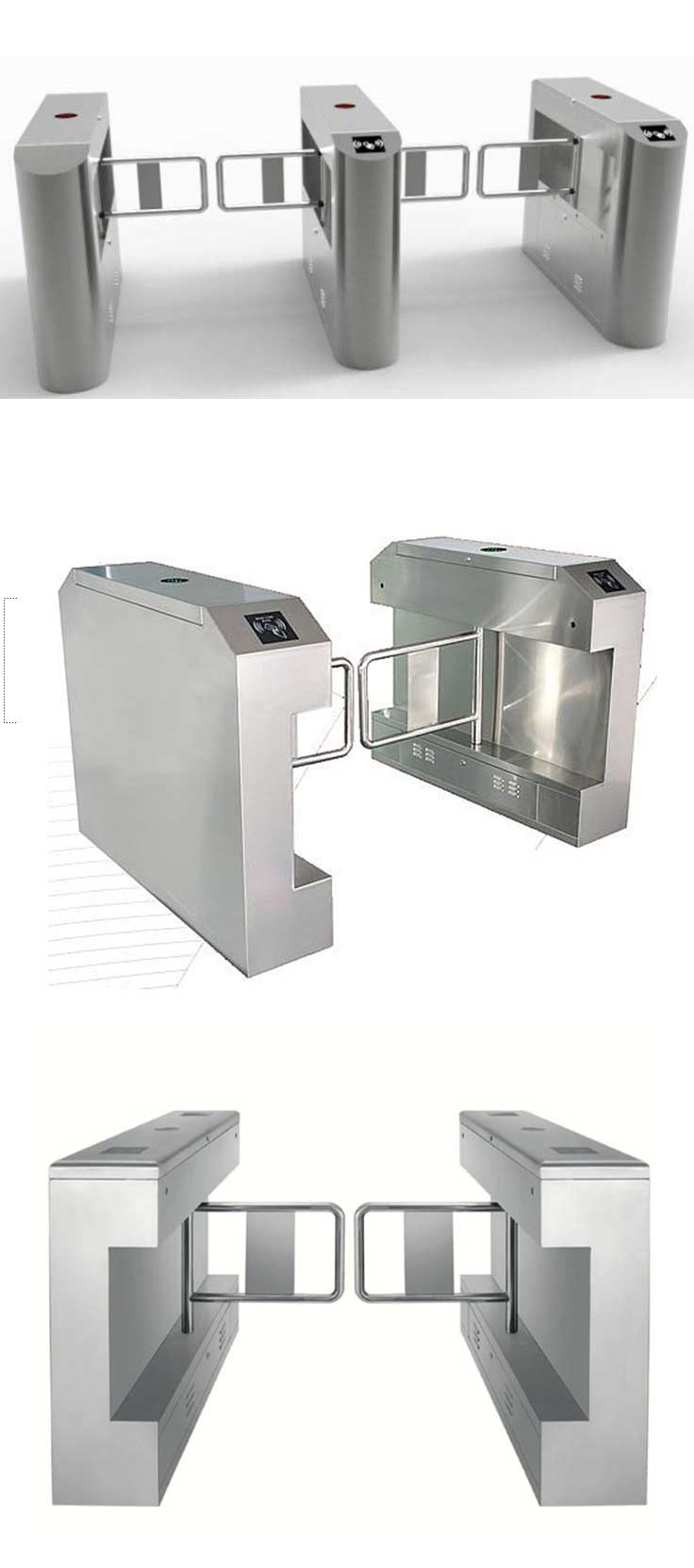 四.門禁可選搭智能通道閘如三輥閘、擺閘或翼閘,也可為電控鎖,磁力鎖,員工反向通行可按出門按鈕或旋鎖或刷卡,也可直接通行。