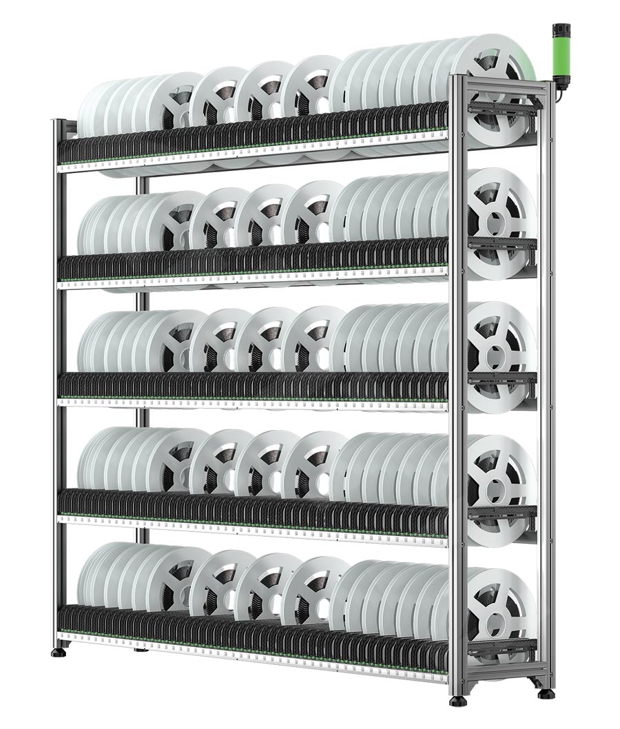 模塊化結構:通過貨架的模塊化,物料儲位的模塊化,亮燈引導設備的模塊化,實現快速、方便的組裝拆卸能力,同時靈活適應各種SMT行業物料件規格