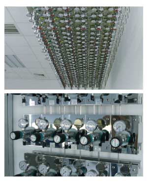 在現(xiàn)代化的實(shí)驗(yàn)室中,為了完成實(shí)驗(yàn),需要用到多種分析儀器, 如氣相色譜儀,原子吸收,氣一質(zhì)聯(lián)用儀,ICP等等,其中這些 儀器需要用到高純氣體,傳統(tǒng)的做法是采用獨(dú)立鋼瓶分散供氣 的模式,這種供氣模式每臺(tái)儀器設(shè)備單獨(dú)配置氣體鋼瓶,分別 滿足每臺(tái)儀器設(shè)備的使用,但隨著近年來(lái)實(shí)驗(yàn)室投資的不斷加 大,儀器設(shè)備的迅速增加,用氣量也逐年增加,傳統(tǒng)的供氣模式 已經(jīng)難以滿足儀器設(shè)備增加的需求,同時(shí)分散供氣模式帶來(lái)的 實(shí)驗(yàn)室布局混亂,鋼瓶的頻繁更換也對(duì)實(shí)驗(yàn)室的管理和維護(hù)造 成了困難,為了解決以上兩個(gè)方面的問(wèn)題,就需要一套安全性 高且能實(shí)現(xiàn)集中分配供氣的系統(tǒng)完成從氣源向儀器的供氣這 就是實(shí)驗(yàn)室高純氣體管道系統(tǒng)的功能所在。