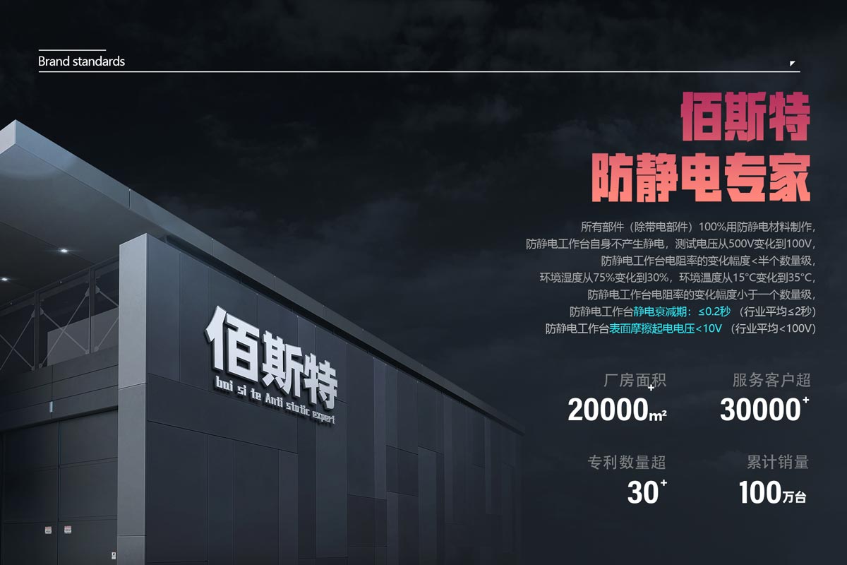 佰斯特集團成立于2000年,一直致力于為客戶提供人性化、模塊化、高品質設計的工業品整體解決方案,旗下產品涵蓋:防靜電產品系列、實驗室 家具系列、工業品大全系列。